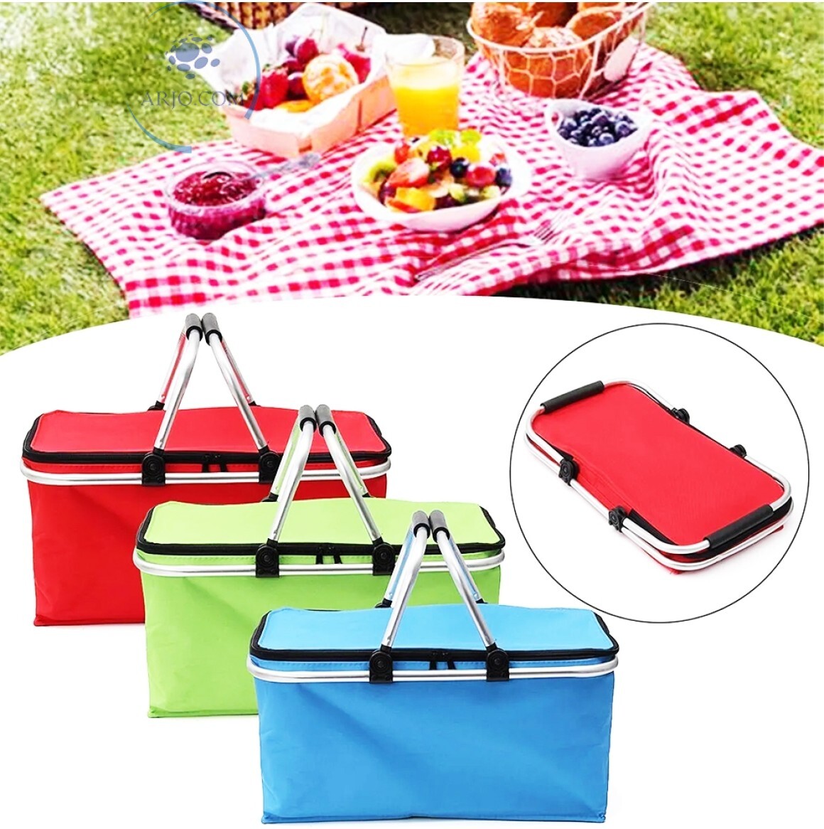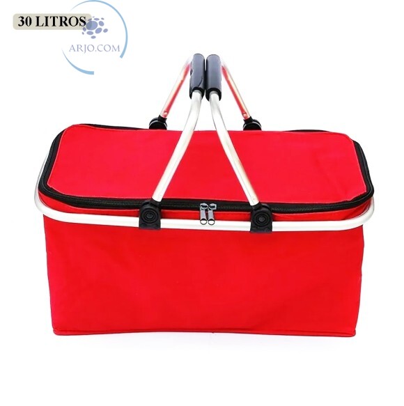 *CESTA TÉRMICA DOBRÁVEL COM ALÇA DE ALUMÍNIO, LEVE E RESISTENTE, IDEAL PARA VIAGEM, PASSEIO, CAMPING;