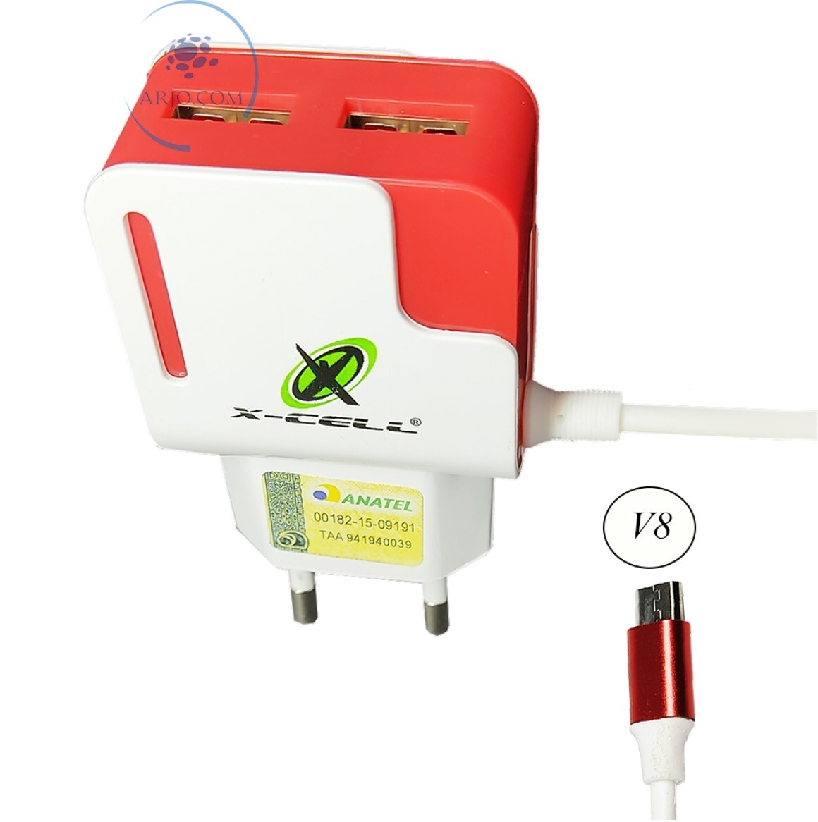CARREGADOR MICRO USB V8 ULTRA RÁPIDO COM 02 ENTRADAS USB 3.1A (XC-UR11)