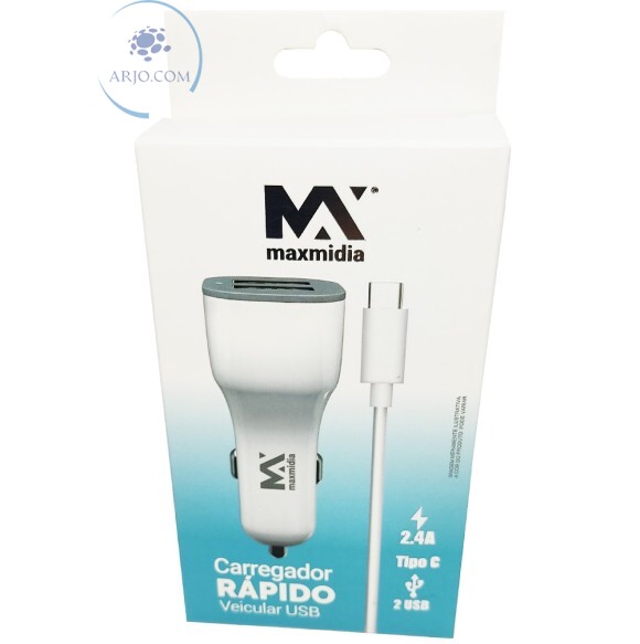 CARREGADOR RÁPIDO VEICULAR 02 ENTRADAS USB COM CABO TIPO-C 2.4A (MAX-631CAR)