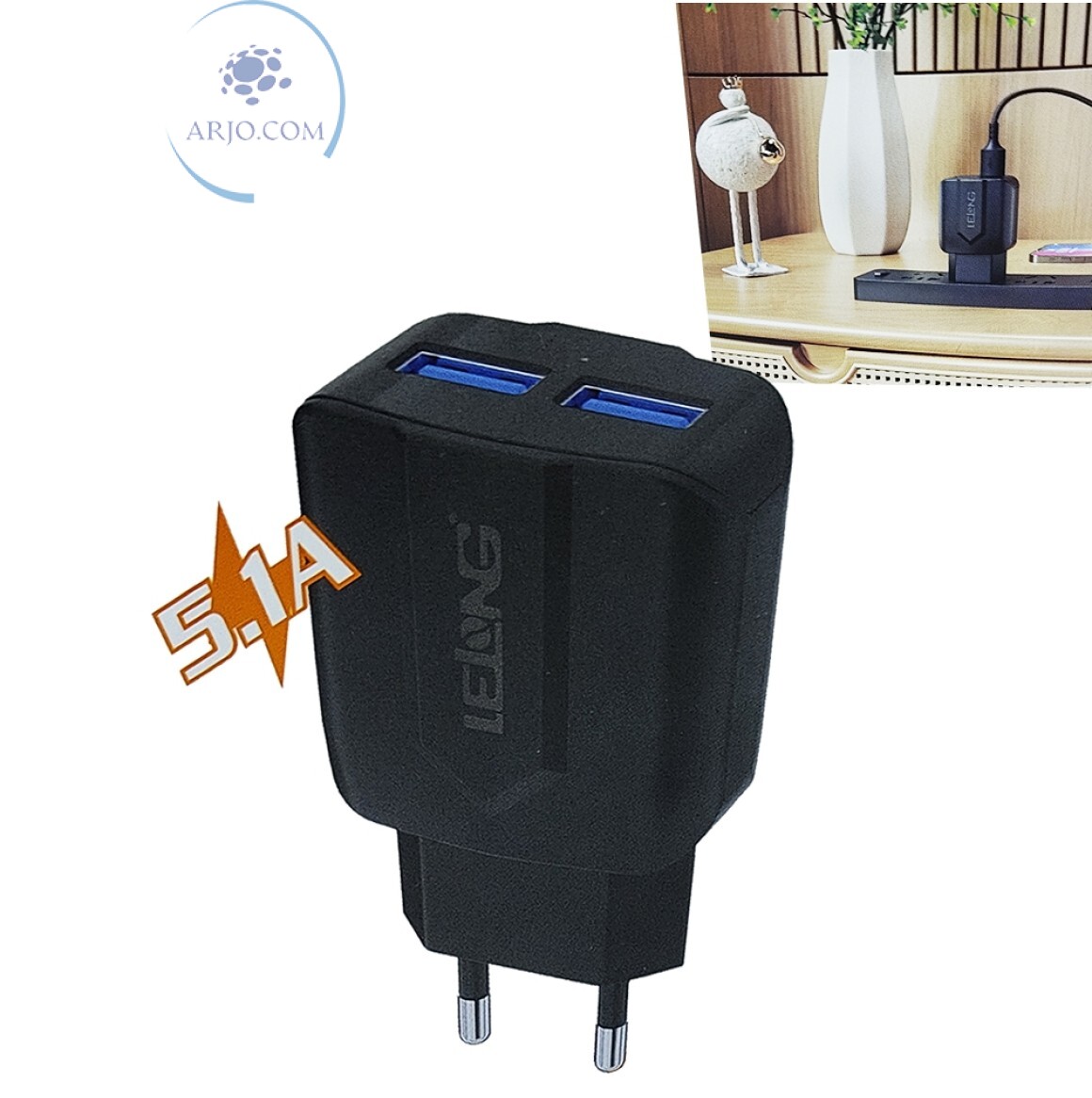CARREGADOR TOMADA VIAGEM COM 2 PORTAS USB 5.1A (LE-242)