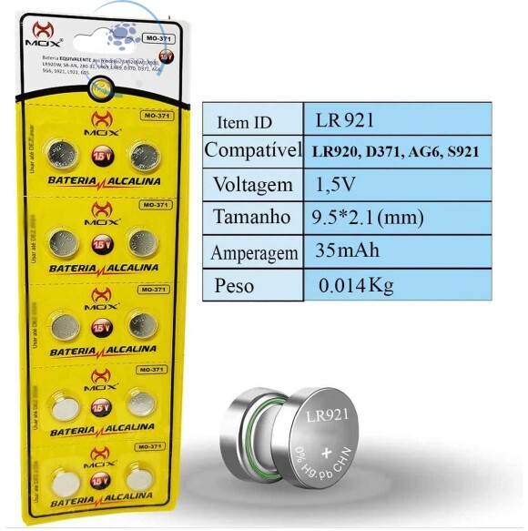 BATERIA 371 ALCALINA 1,5V CARTELA COM 10 UNIDADES (MO-371)