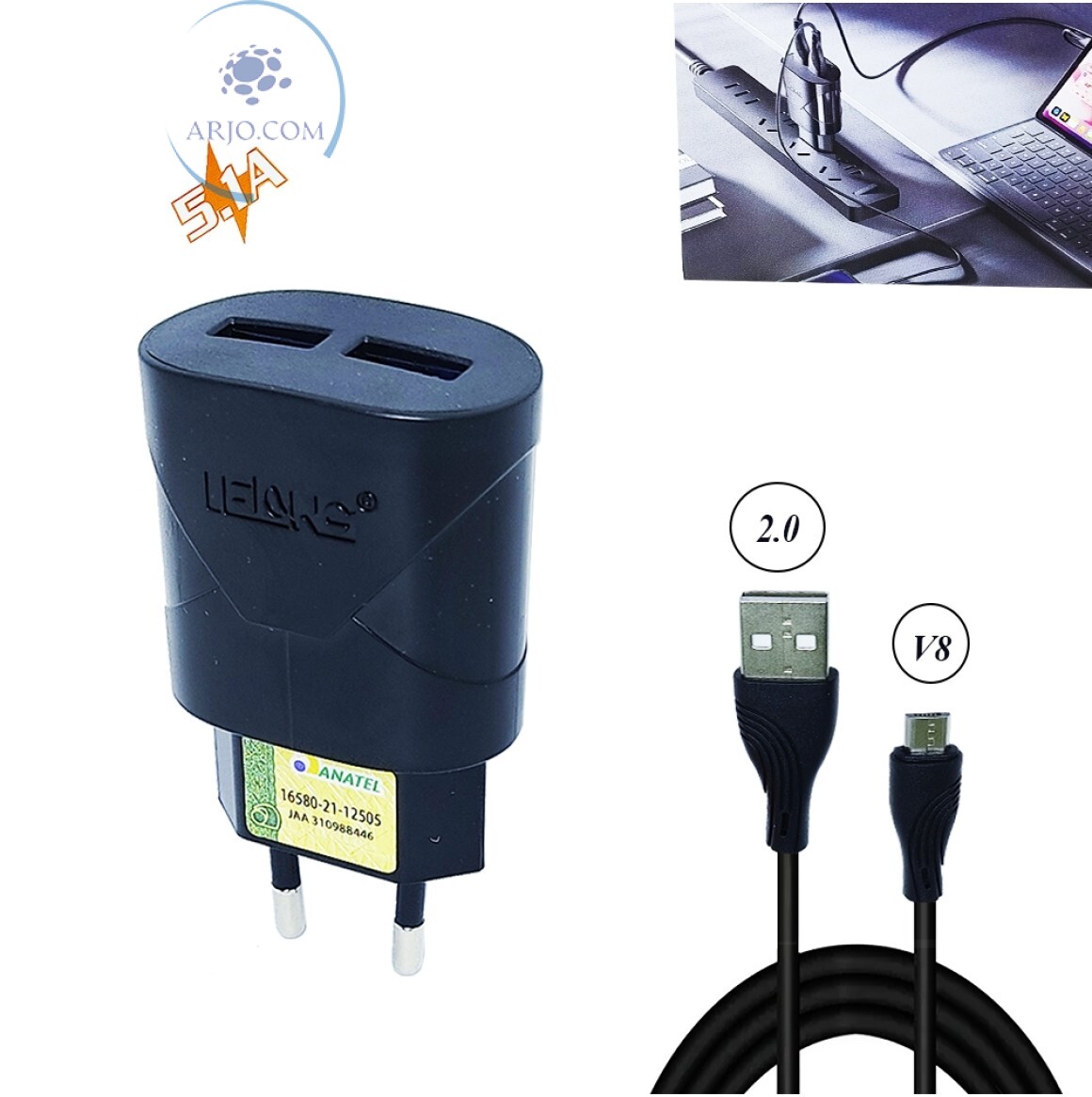 CARREGADOR RÁPIDO COM 2 PORTAS USB 5.1A + CABO V8 (LE-232FV)
