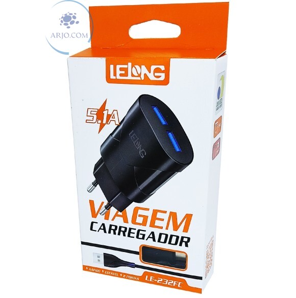 CARREGADOR RÁPIDO COM 2 PORTAS USB 5.1A + CABO TIPO C (LE-232FC)