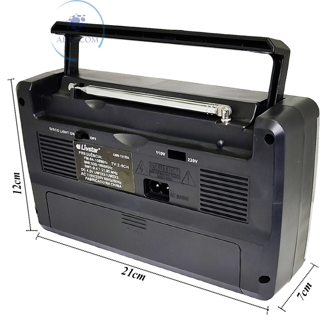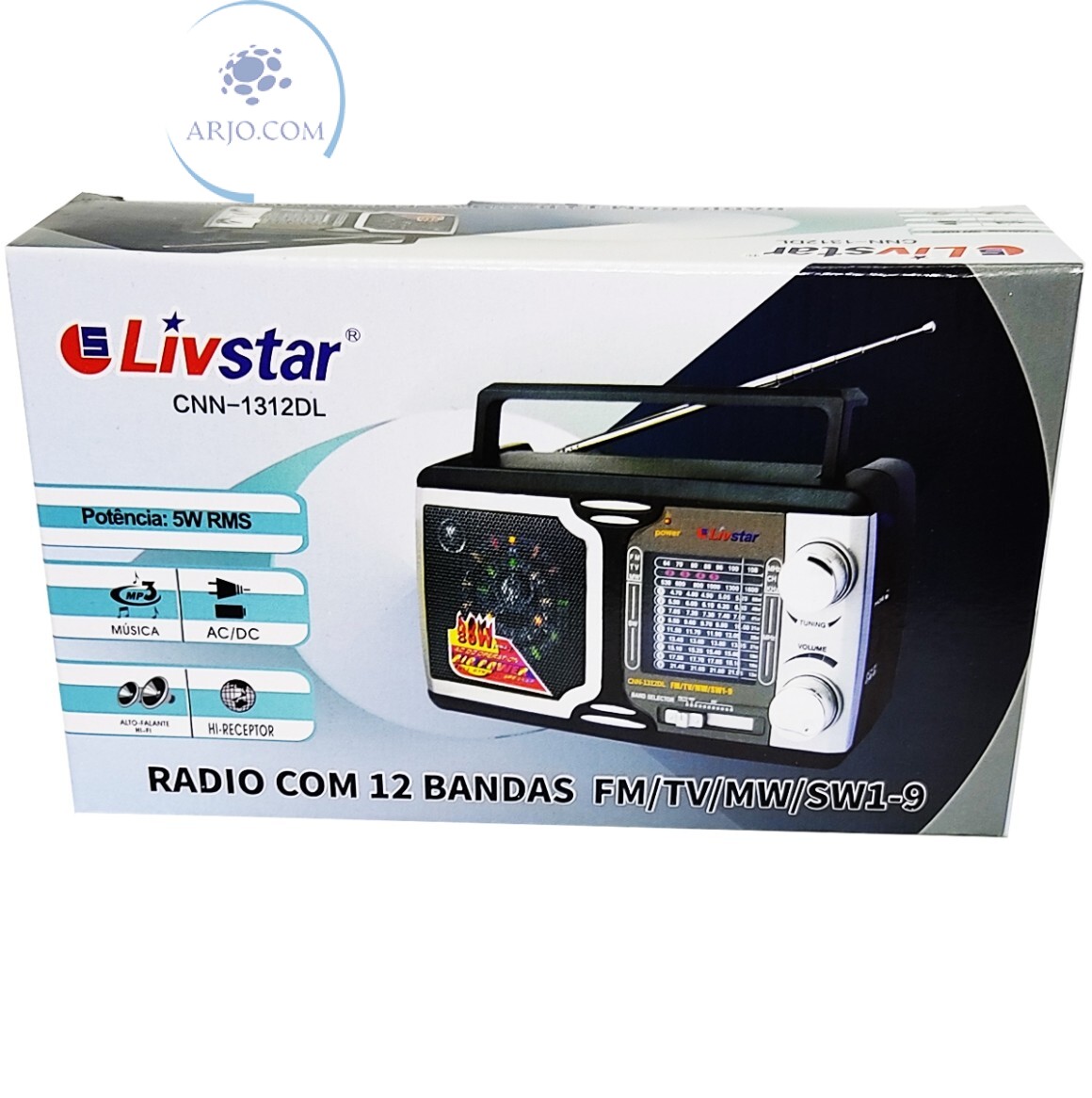 *CONTEÚDO NA EMBALAGEM: 01 RÁDIO PORTÁTIL 12 BANDAS, 01 CABO DE FORÇA;