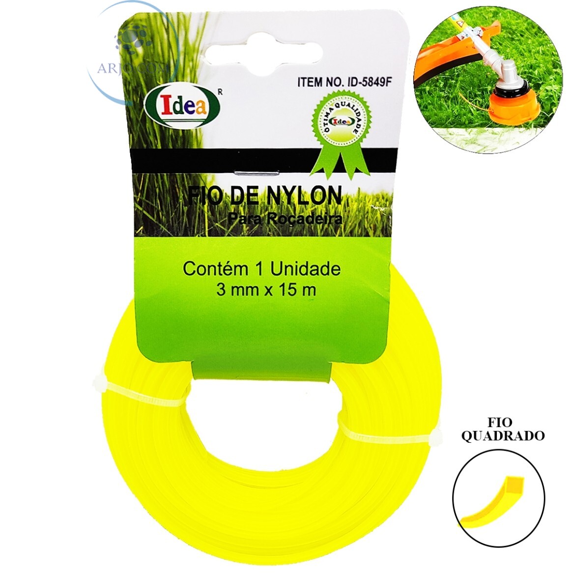 FIO DE NYLON QUADRADO PARA ROÇADEIRA 3mmX15m (ID-5849F)