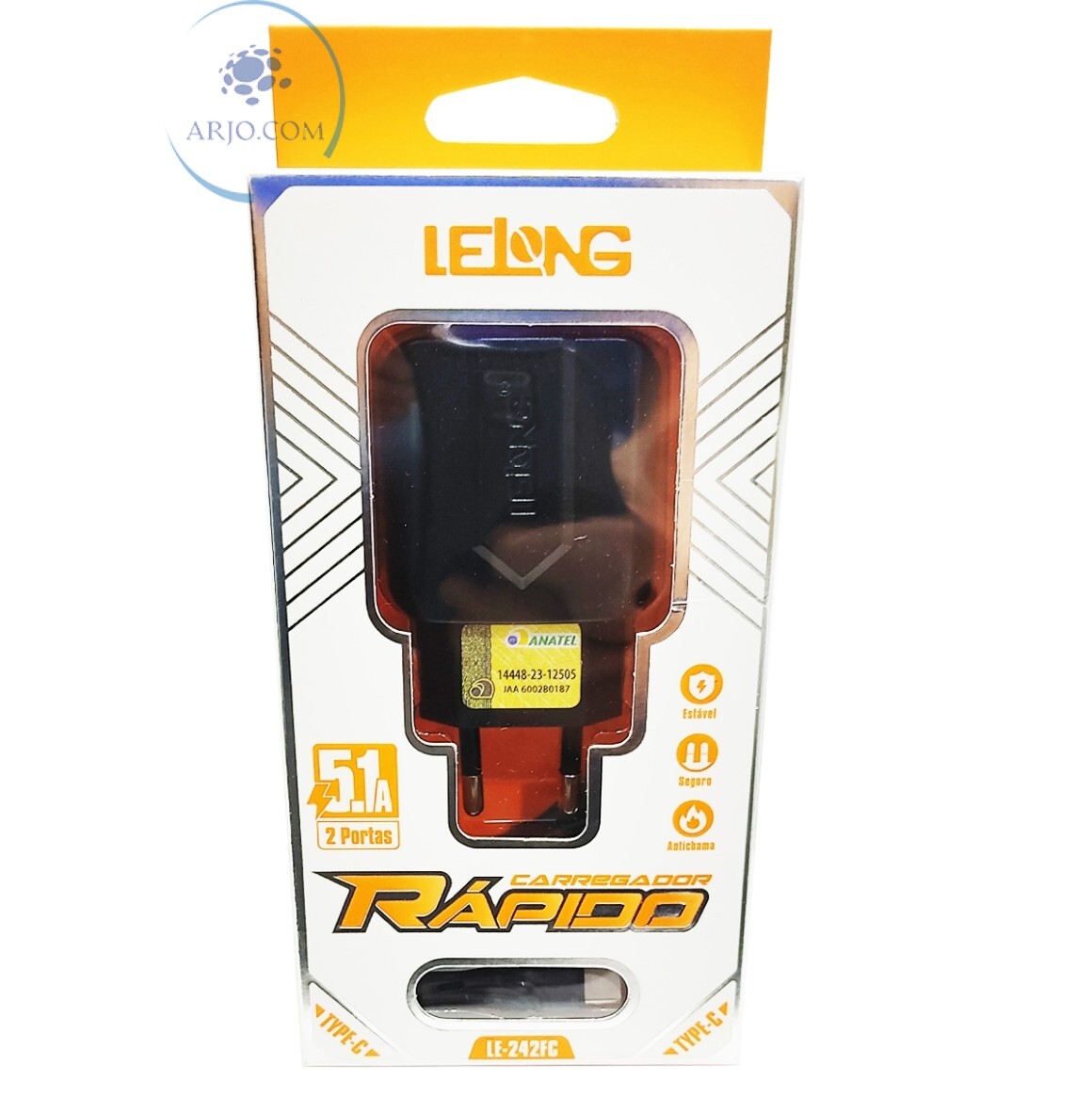 CARREGADOR RÁPIDO COM 2 PORTAS USB 5.1A + CABO TIPO C (LE-242FC)