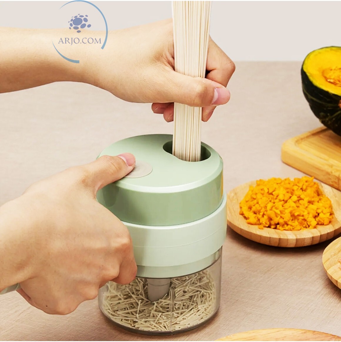 *ACOMPANHA RECEPIENTE DE 200ml, LÂMINA DE TRITURAR E CABO USB;