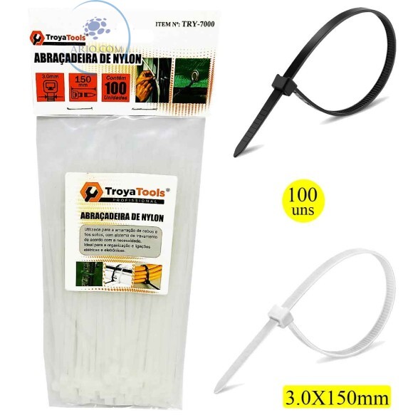ABRAÇADEIRA DE NYLON 03 X 150mm PACOTE COM 100 PEÇAS (TRY-7000)