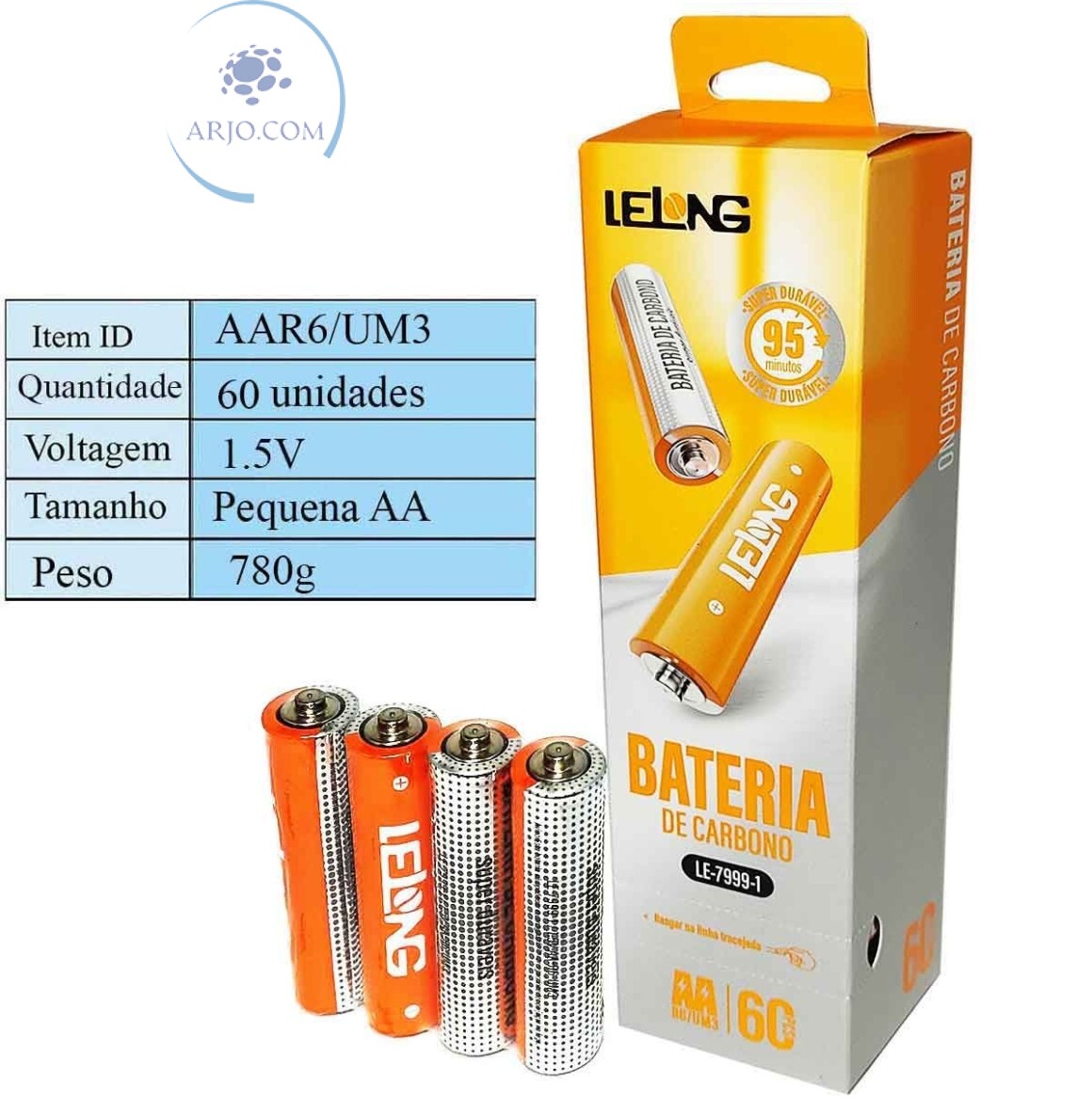*CONTÉM 15 EMBALAGENS COM 4 PILHAS CADA, TOTAL DE 60 PILHAS;