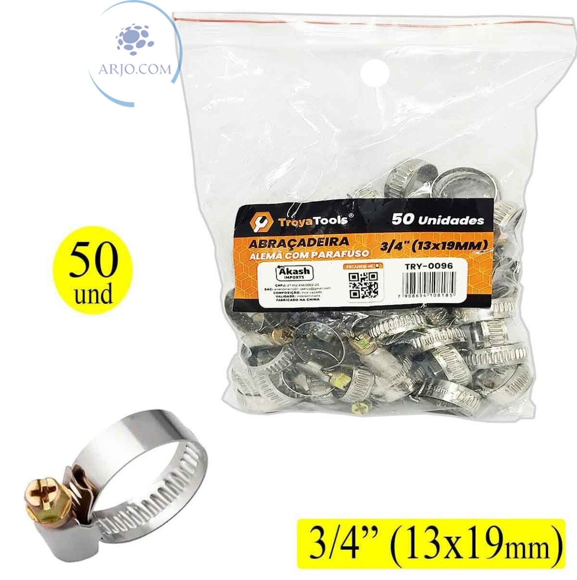 ABRAÇADEIRA ALEMÃ COM PARAFUSO 50 UNIDADES (TRY-0096)