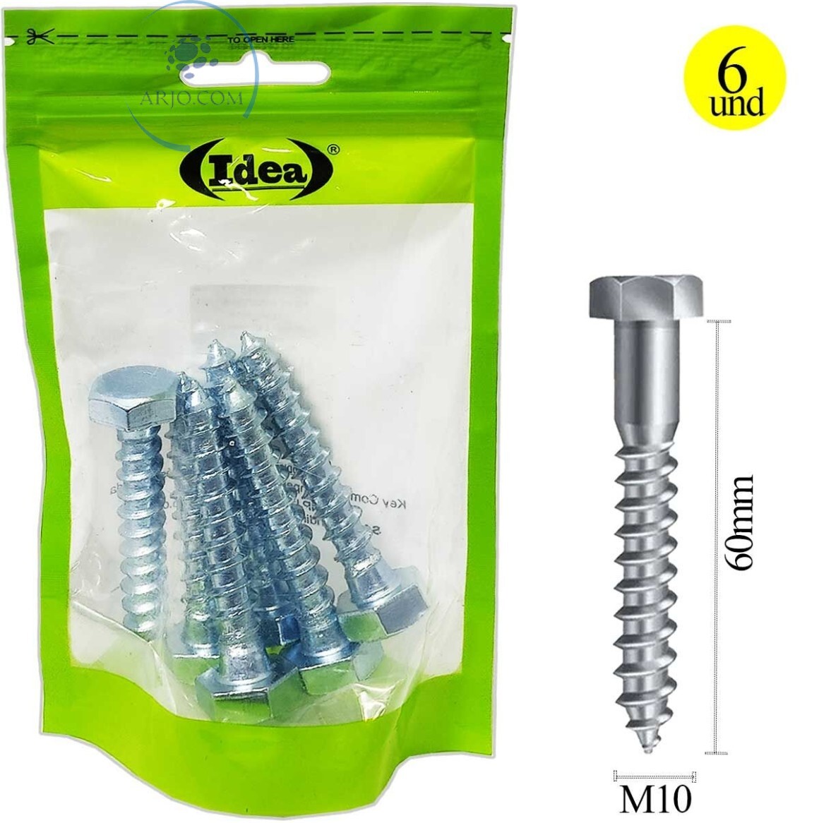 KIT 06 PARAFUSOS SEXTAVADO ROSCA SOBERBA 10mmX60mm (ID-0818P)