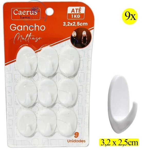 *CONTEÚDO NA EMBALAGEM: 9 GANCHOS MULTIUSO ADESIVOS;