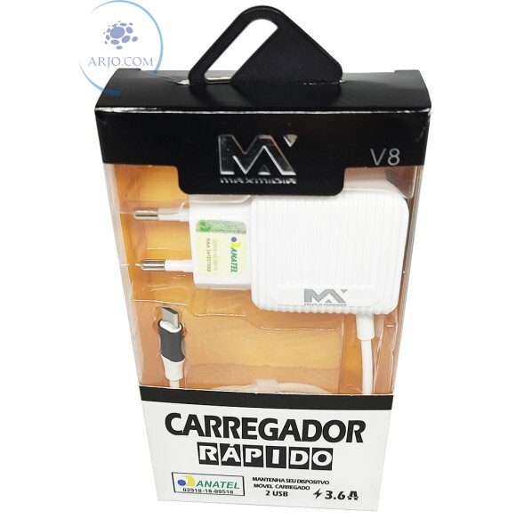 CARREGADOR PARA CELULAR V8 COM DUAS PORTAS USB 3.6A (MAX-CAR67).