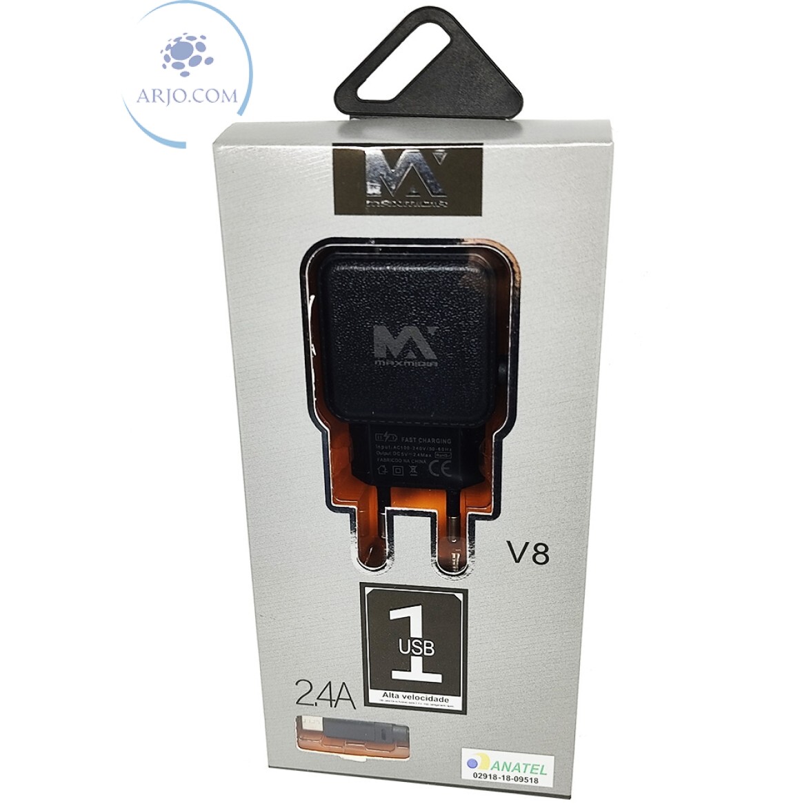 CARREGADOR PARA CELULAR V8 COM 01 ENTRADA USB 2.4A (MAX-CAR85)