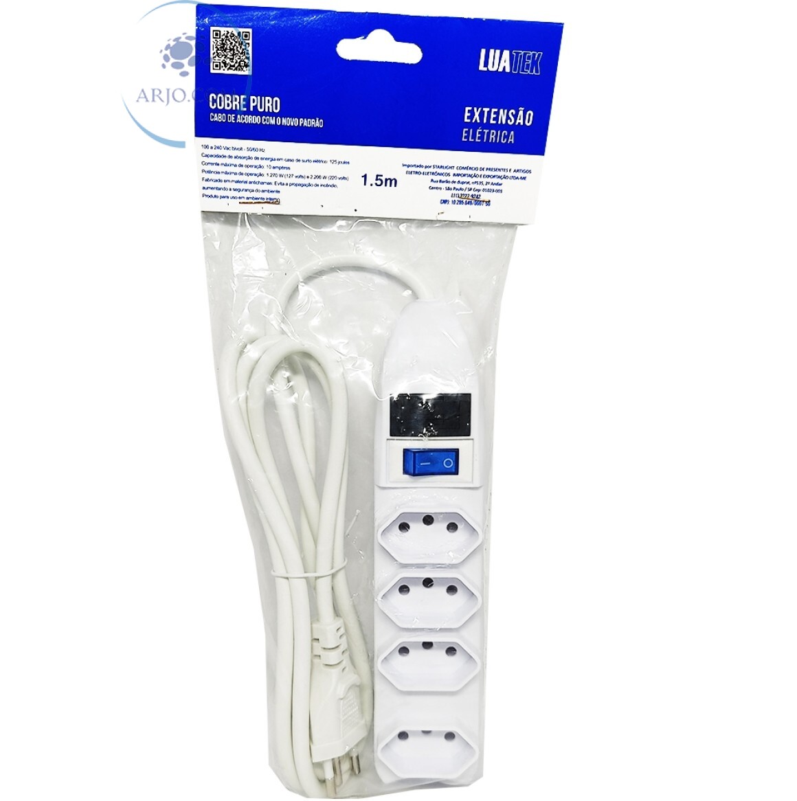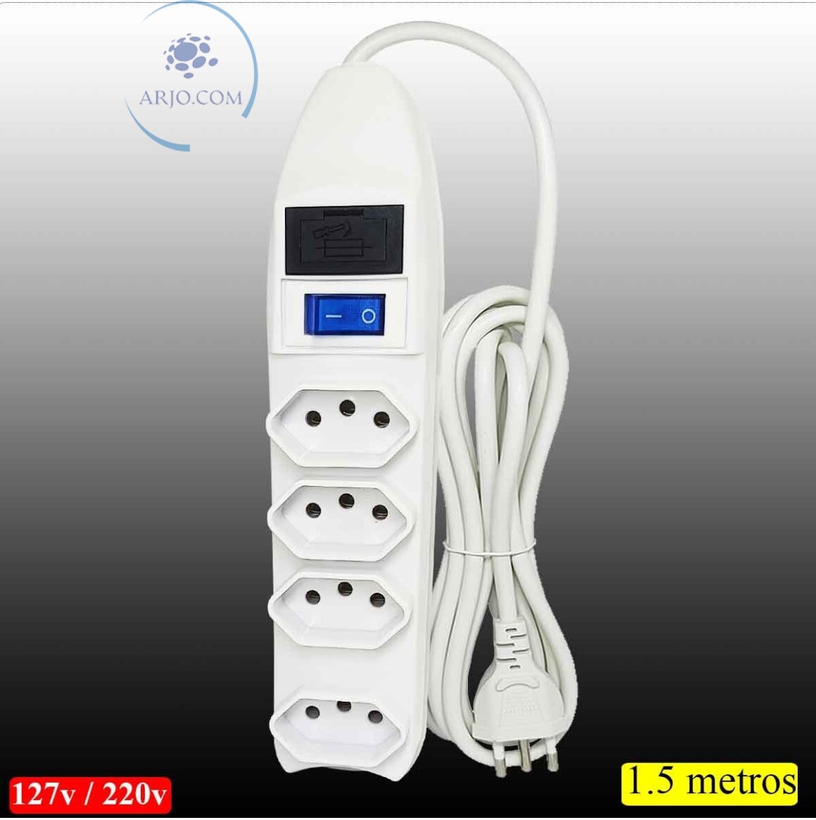 EXTENSÃO ELÉTRICA DE 1,5 METROS COM 04 TOMADAS TRIPLAS E FUSÍVEL DE PROTEÇÃO (SL7604)