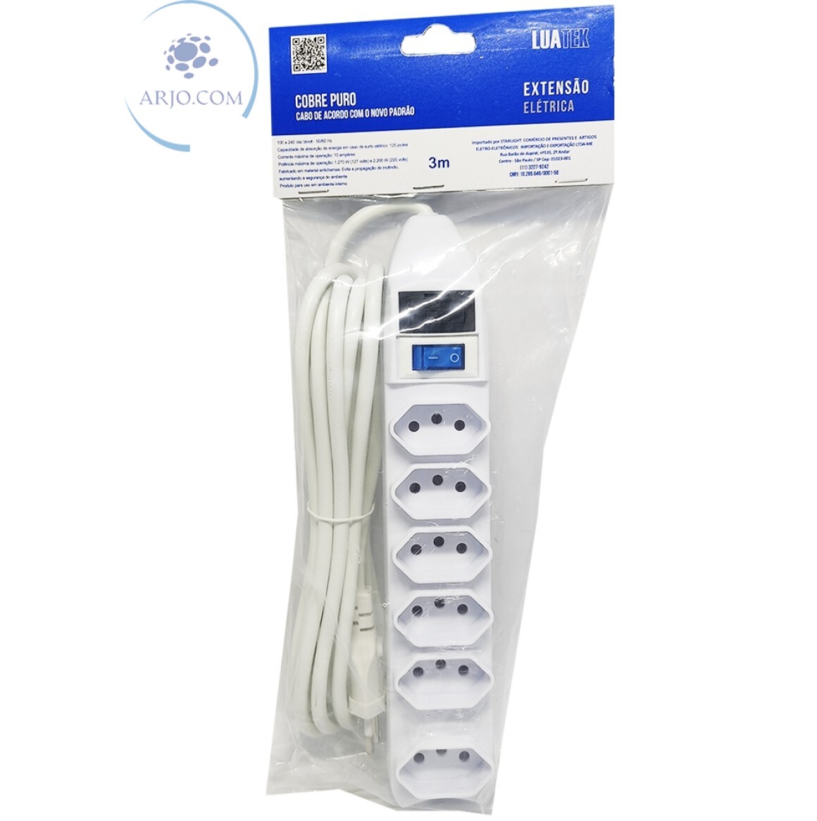 EXTENSÃO ELÉTRICA DE 3 METROS COM 06 TOMADAS TRIPLAS E FUSÍVEL DE PROTEÇÃO (SL7606-3m)