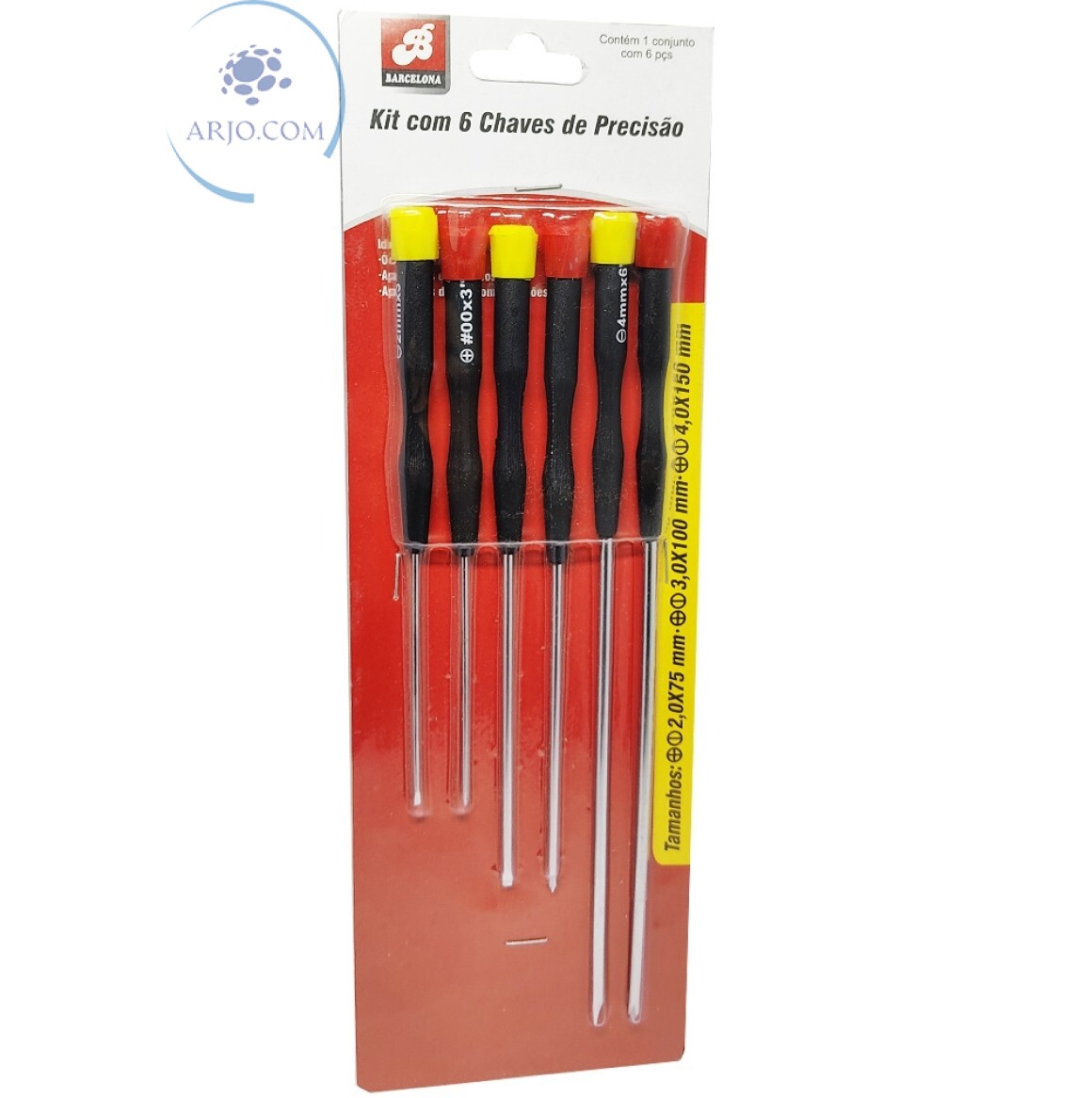 *CONTEÚDO NA EMBALAGEM: 03 CHAVES PRECISÃO FENDA, 03 CHAVES PRECISÃO PHILIPS;