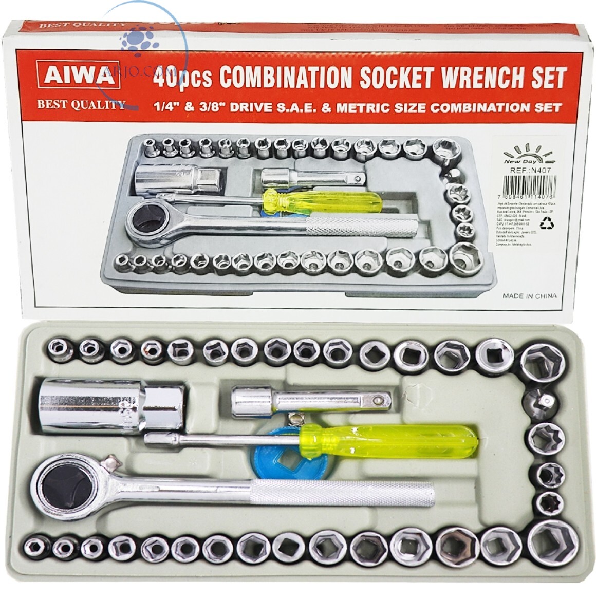 KIT 40 PEÇAS JOGO DE CHAVE CATRACA REVERSÍVEL COM SOQUETES (N407)