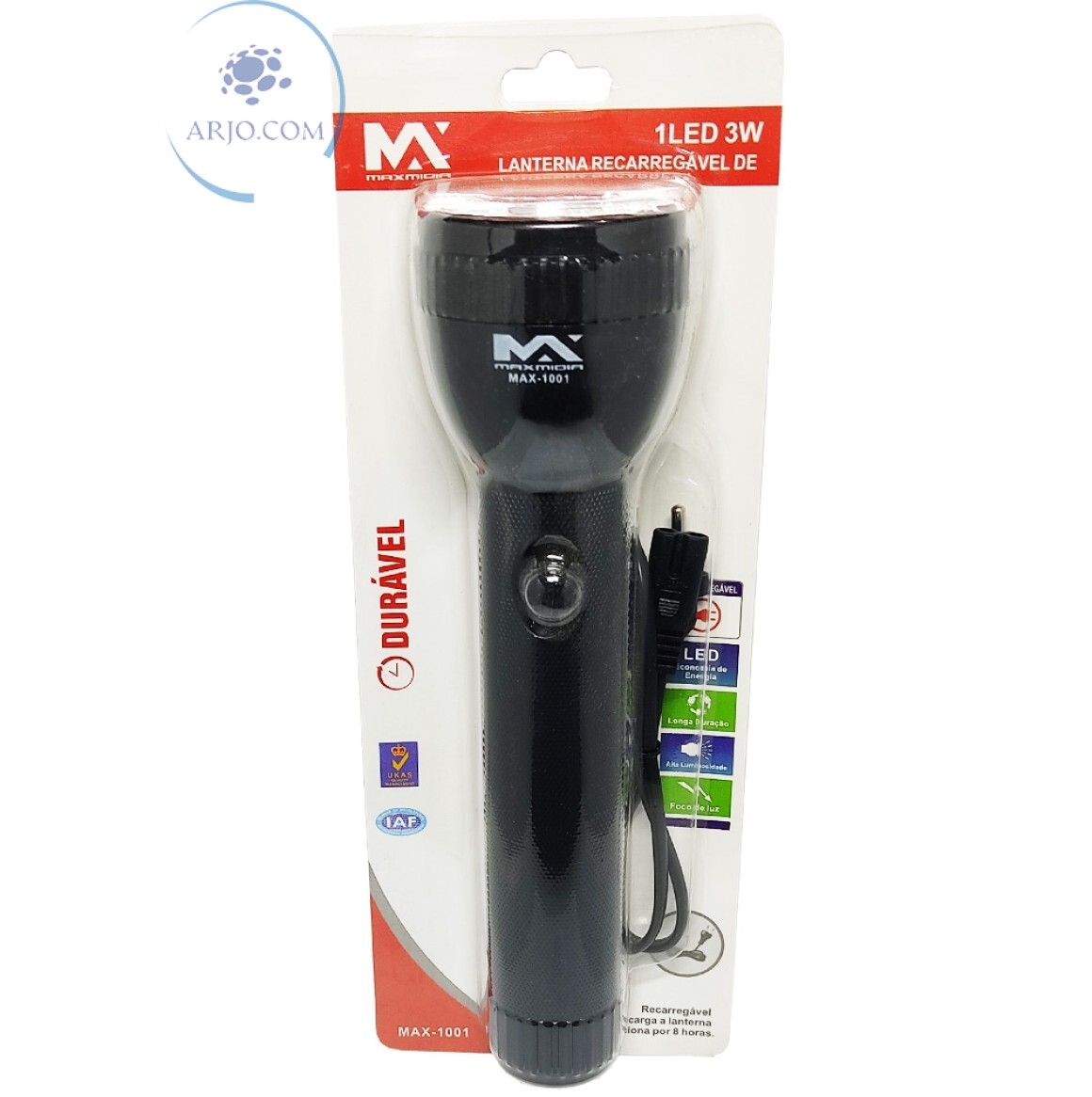LANTERNA RECARREGÁVEL 1 LED 3W (MAX-1001)