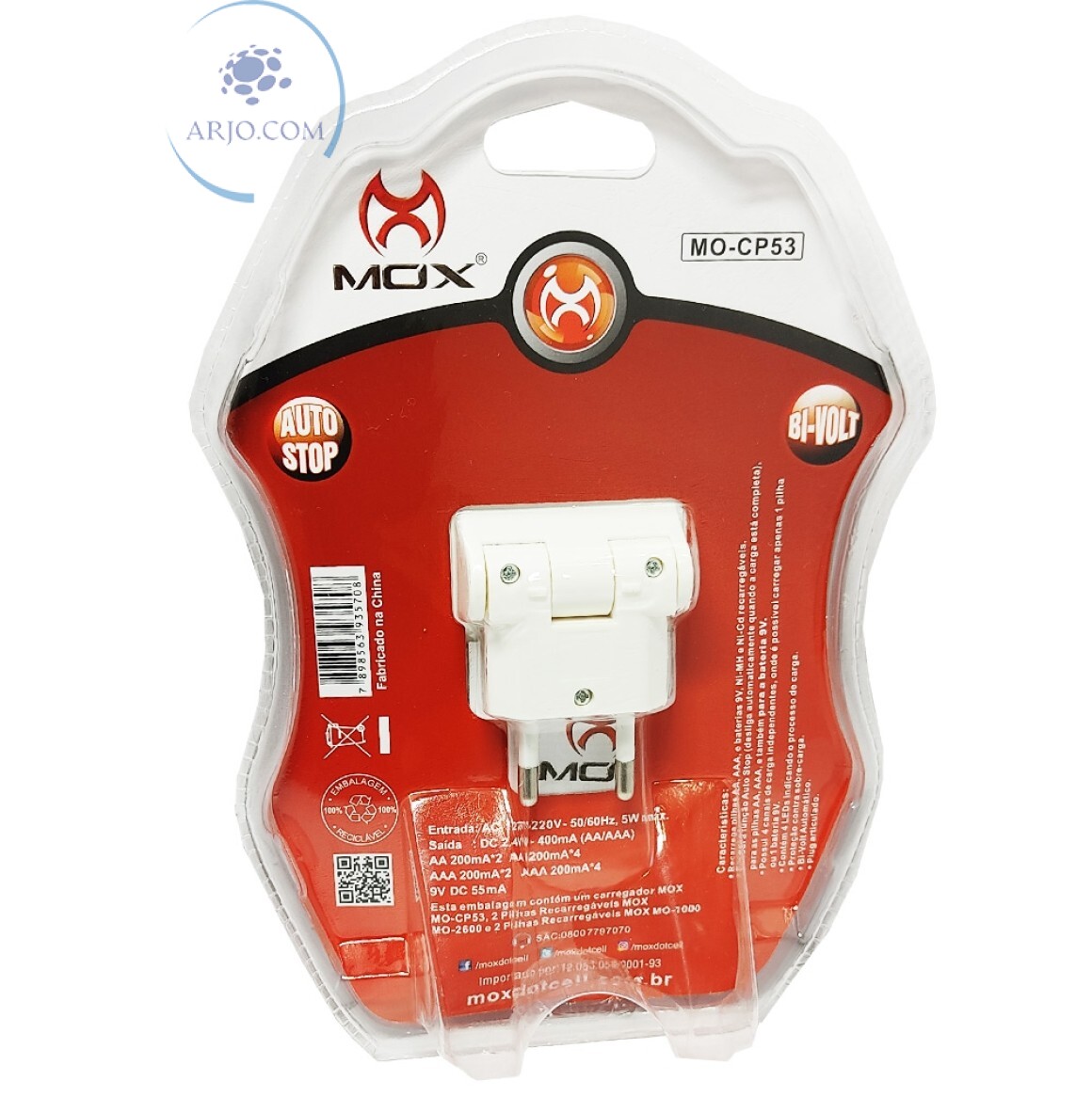 CARREGADOR DE PILHA COM 2 PILHAS AAA 1000mAh E 2 PILHAS AA 2600mAh (MO-CP53)