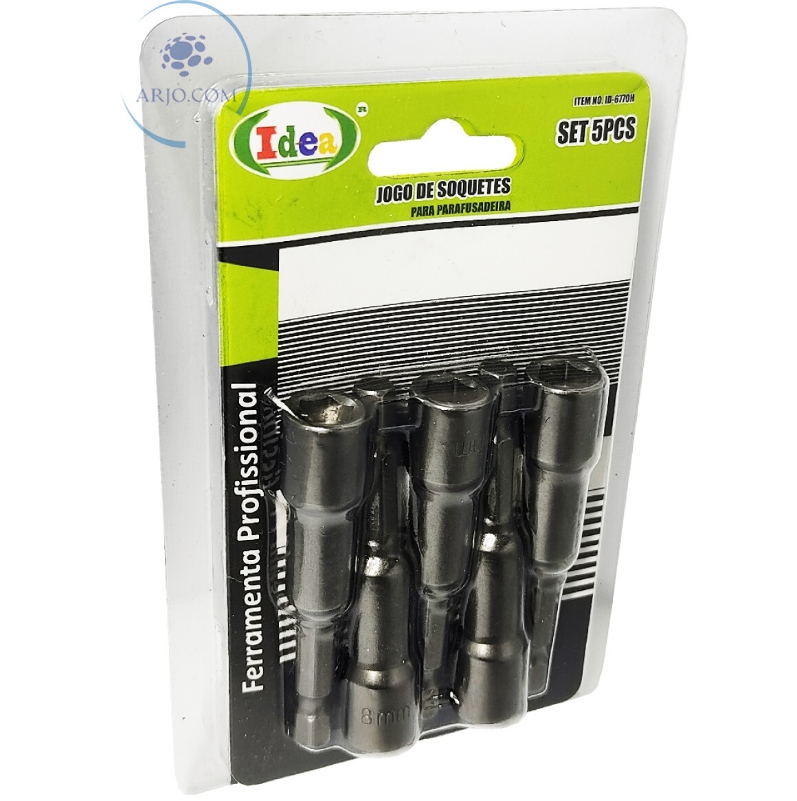 JOGO COM 5 UNIDADES DE SOQUETES 8mm X 65mm PARA PARAFUSADEIRA (ID-6770H)