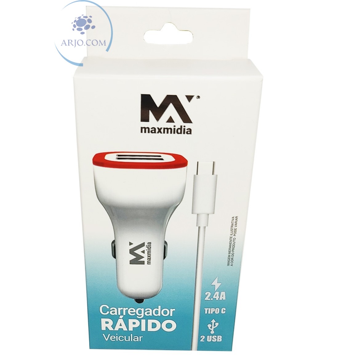 CARREGADOR RÁPIDO VEICULAR 02 ENTRADAS USB COM CABO TIPO-C 2.4A (MAX-632CAR)