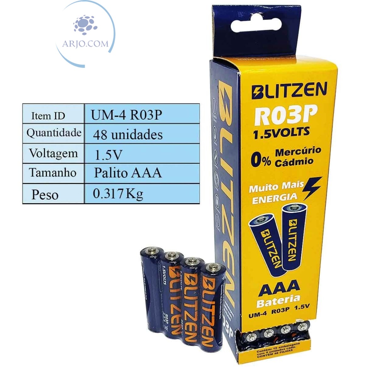 PILHA AAA PALITO TUBO COM 48 UNIDADES (BLITZEN-AAA)