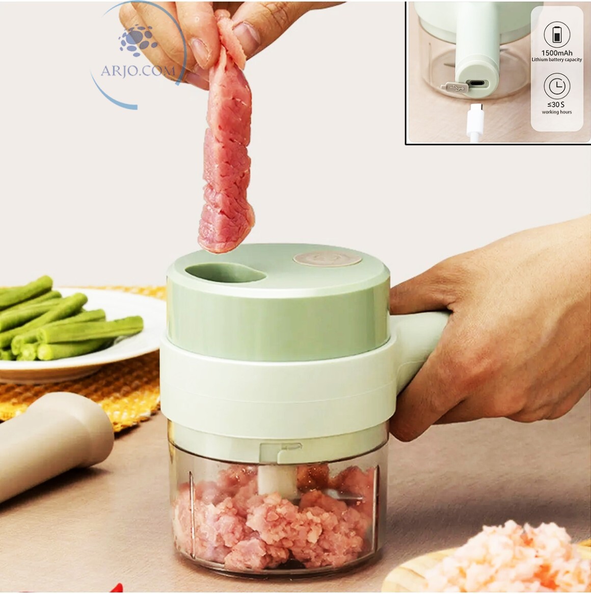 *ACOMPANHA RECEPIENTE DE 200ml, LÂMINA DE TRITURAR E CABO USB;