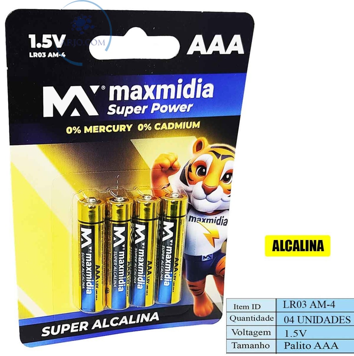 *CONTEÚDO DA EMBALAGEM: 04 PILHAS SUPER ALCALINA PALITO AAA;