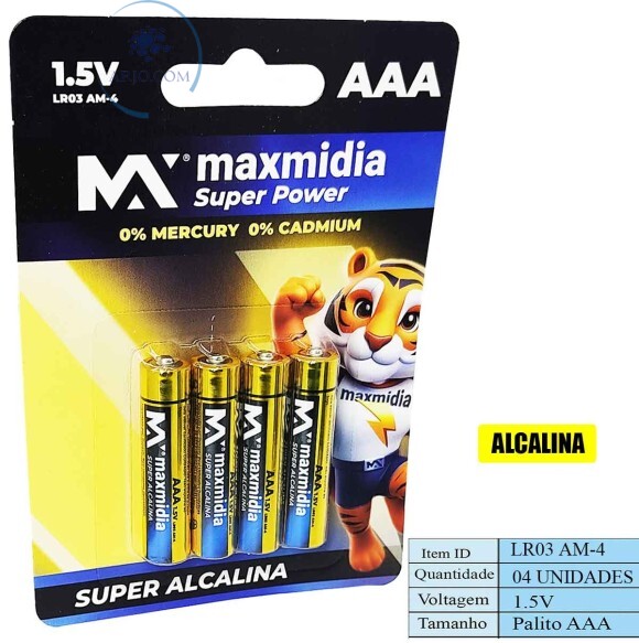 PILHA SUPER ALCALINA PALITO AAA 4 UNIDADES (MAX-ALK6666)