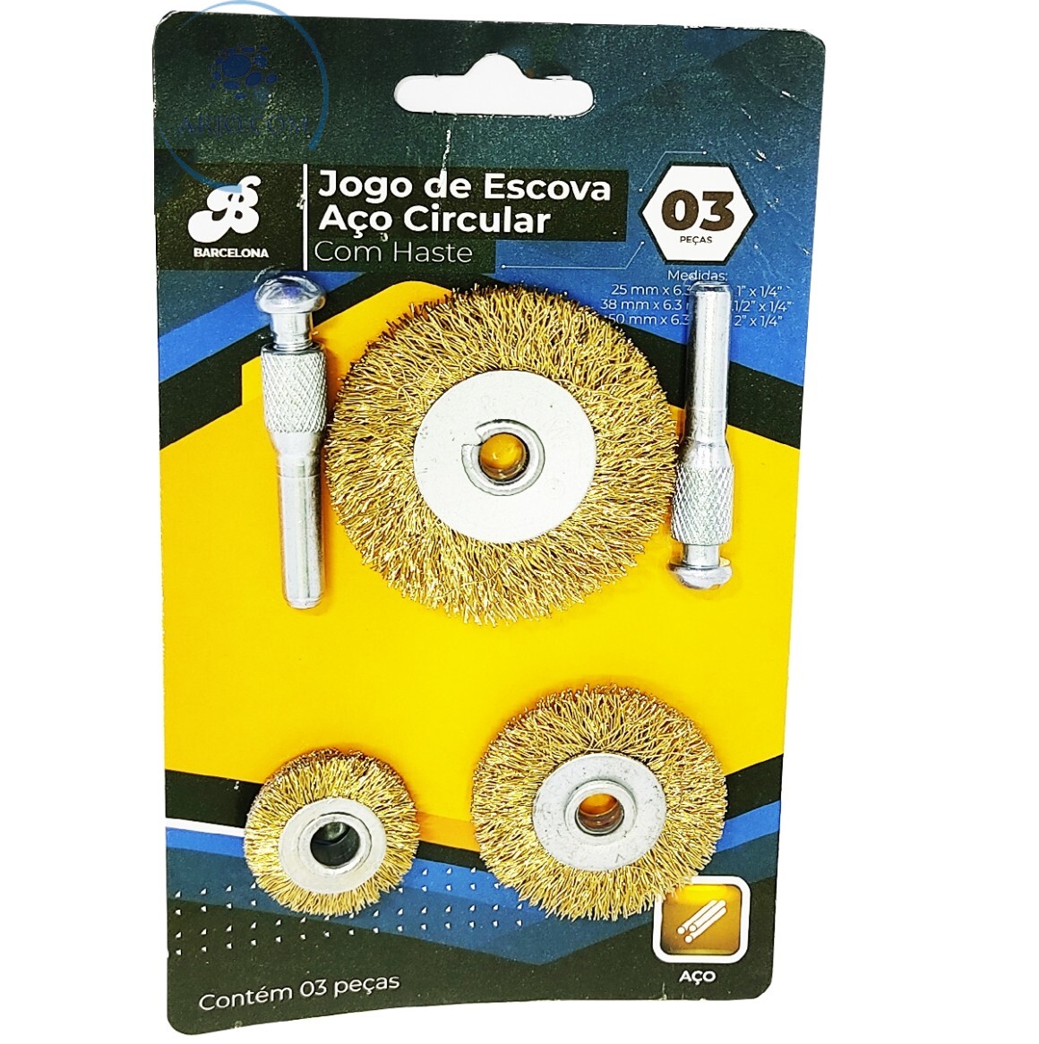 JOGO DE ESCOVA AÇO CIRCULAR COM HASTE (BAR-326007-6)