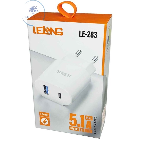 CARREGADOR USB E TIPO-C TURBO 5.1A (LE-283)