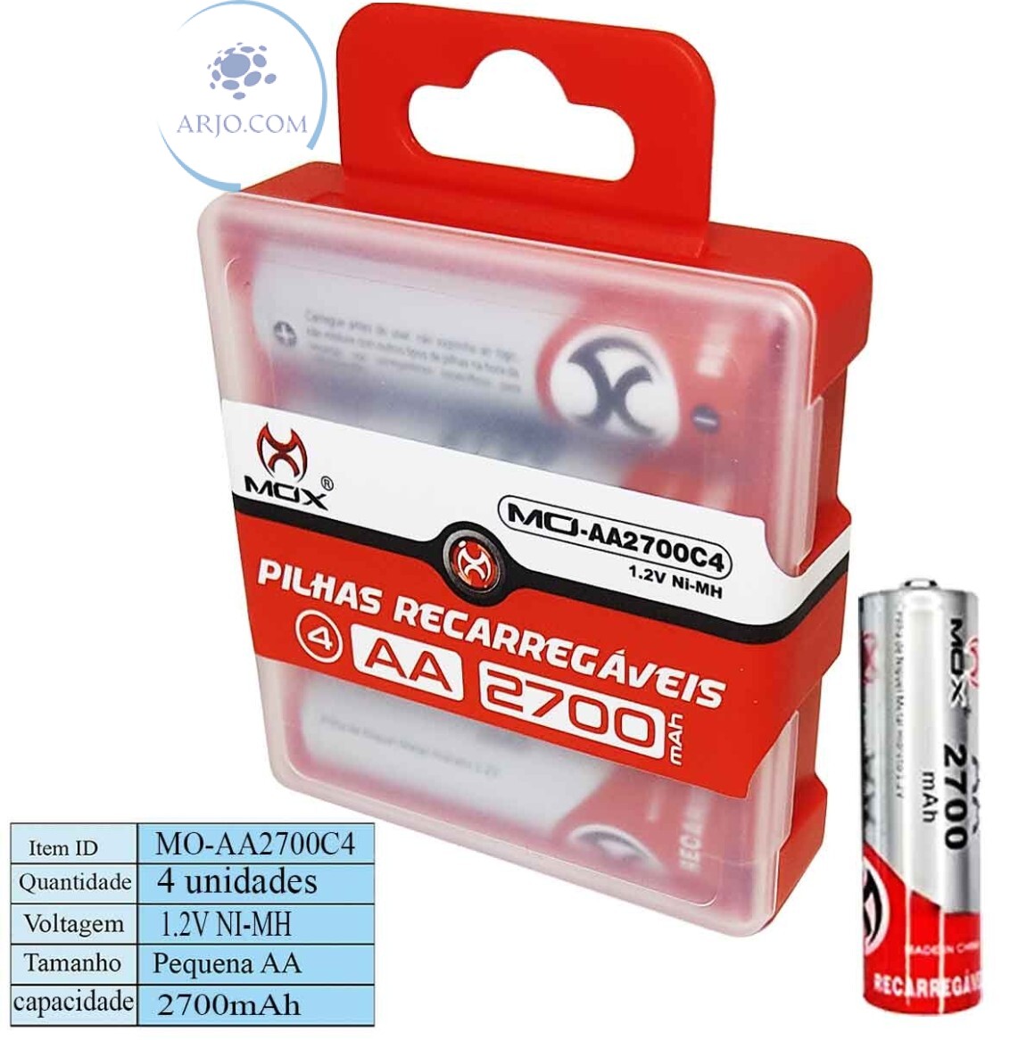 PILHA RECARREGÁVEL AA 2700mAh 4 UNIDADES (MO-AA2700C4)