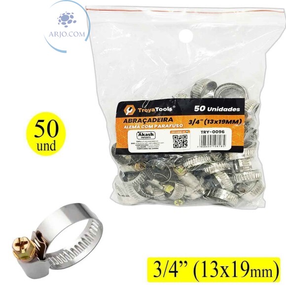ABRAÇADEIRA ALEMÃ COM PARAFUSO 50 UNIDADES (TRY-0096)