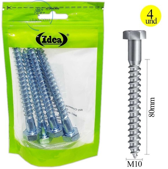 KIT 04 PARAFUSOS SEXTAVADO ROSCA SOBERBA 10mmX100mm (ID-0807P)