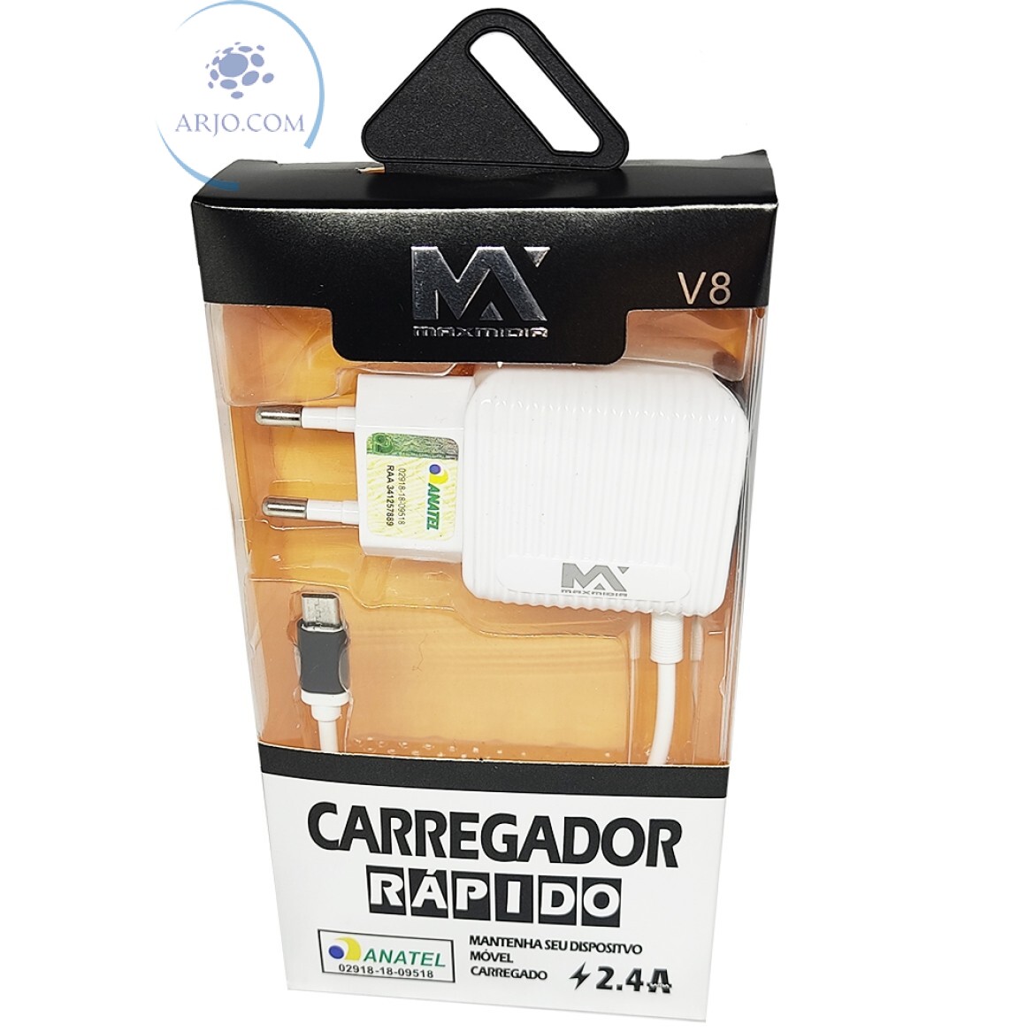 CARREGADOR PARA CELULAR V8 COM UMA PORTA USB 2.4A (MAX-CAR63)