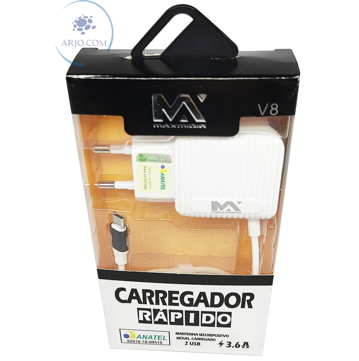 CARREGADOR PARA CELULAR V8 COM DUAS PORTAS USB 3.6A (MAX-CAR67).