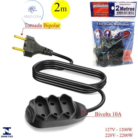 EXTENSÃO ELÉTRICA PRISMATEC DUPLA DE 2 METROS