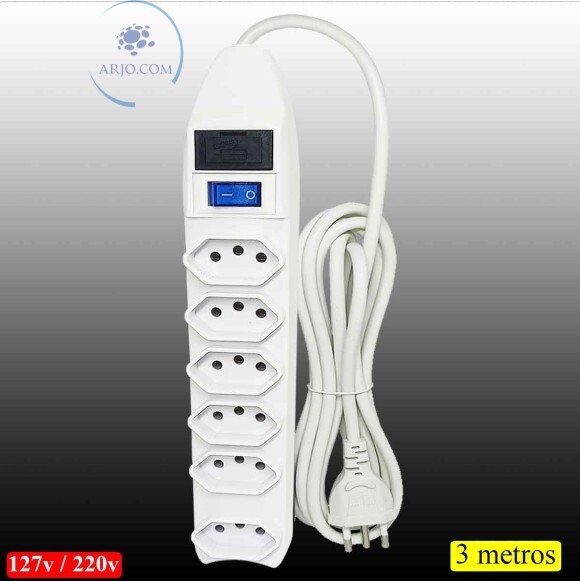 EXTENSÃO ELÉTRICA DE 3 METROS COM 06 TOMADAS TRIPLAS E FUSÍVEL DE PROTEÇÃO (SL7606-3m)