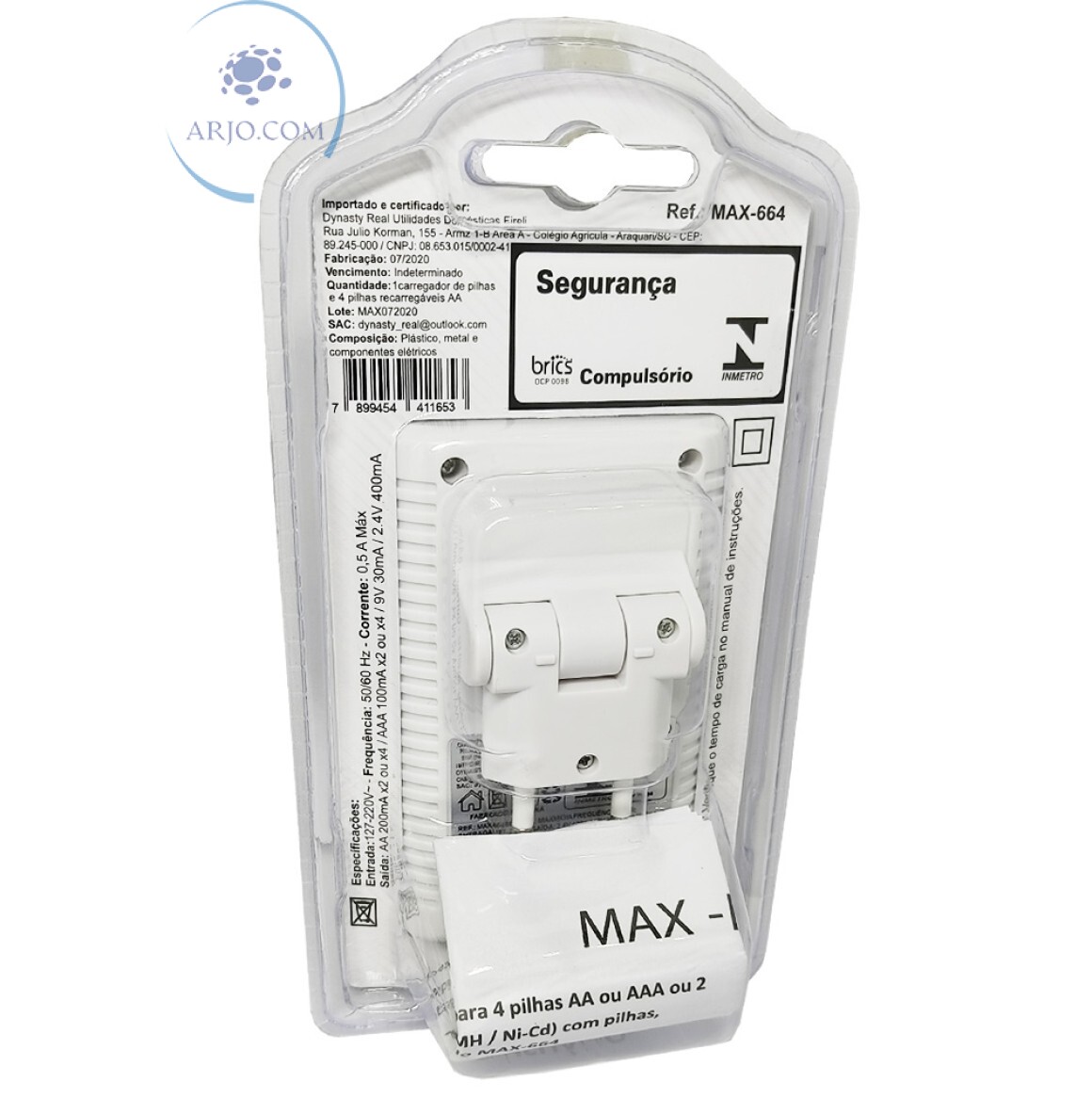 CARREGADOR DE PILHA COM 4 PILHAS AA 2100mAh (MAX-664)