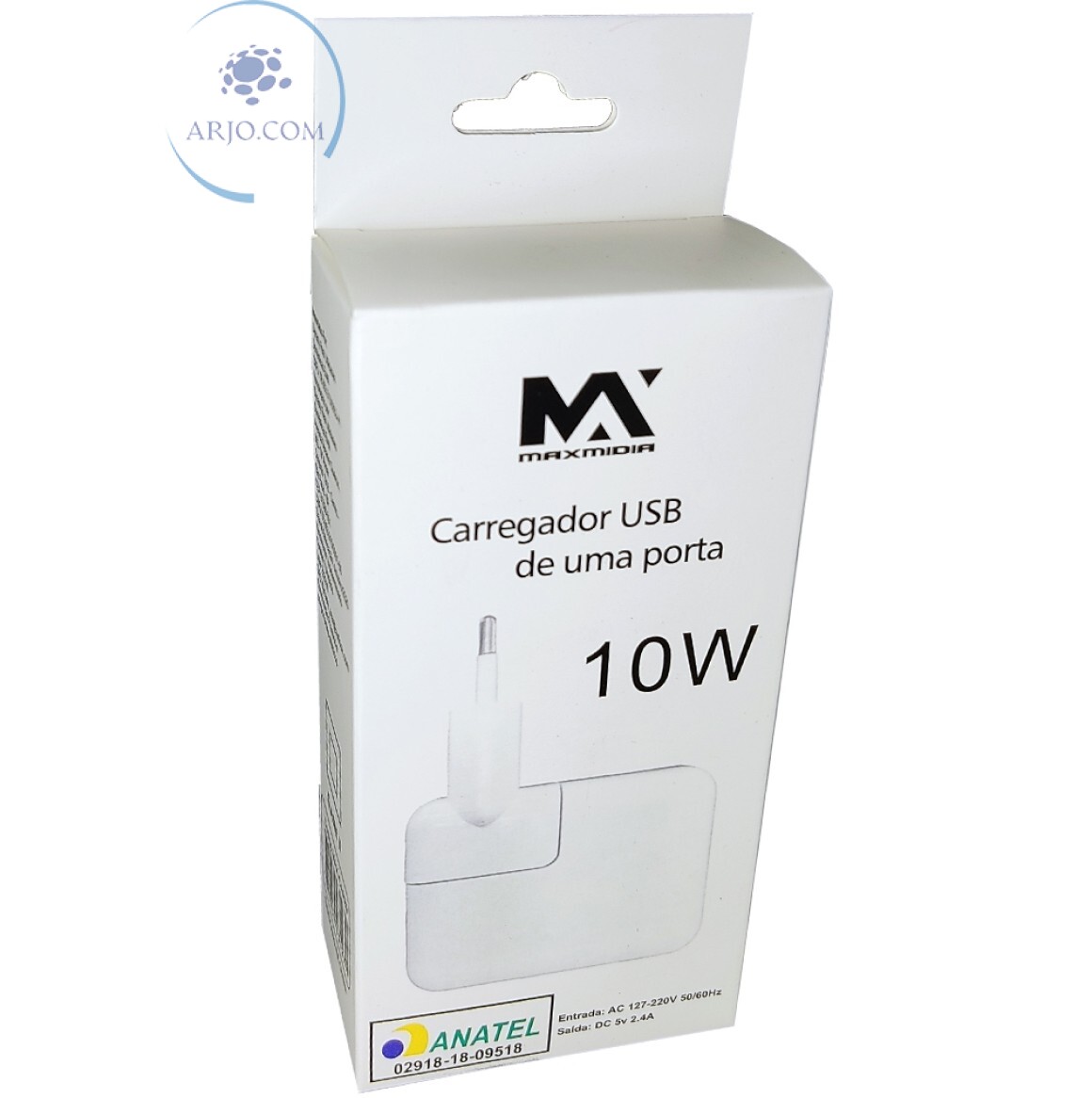 CARREGADOR USB DE UMA PORTA 10W (MAX-CAR89)